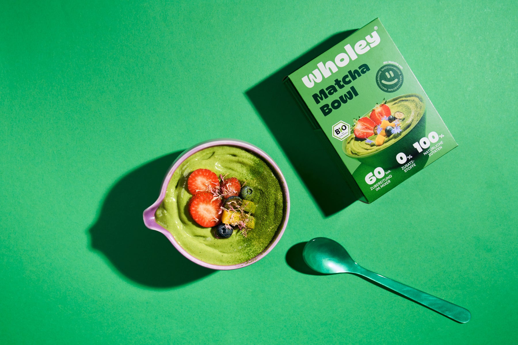Banane*, Zucchini*, Mango*, Datteln*, Kokosnuss*, Avocado*, Matcha* 0,8 %, Limettensaft*, Vanilleextrakt*