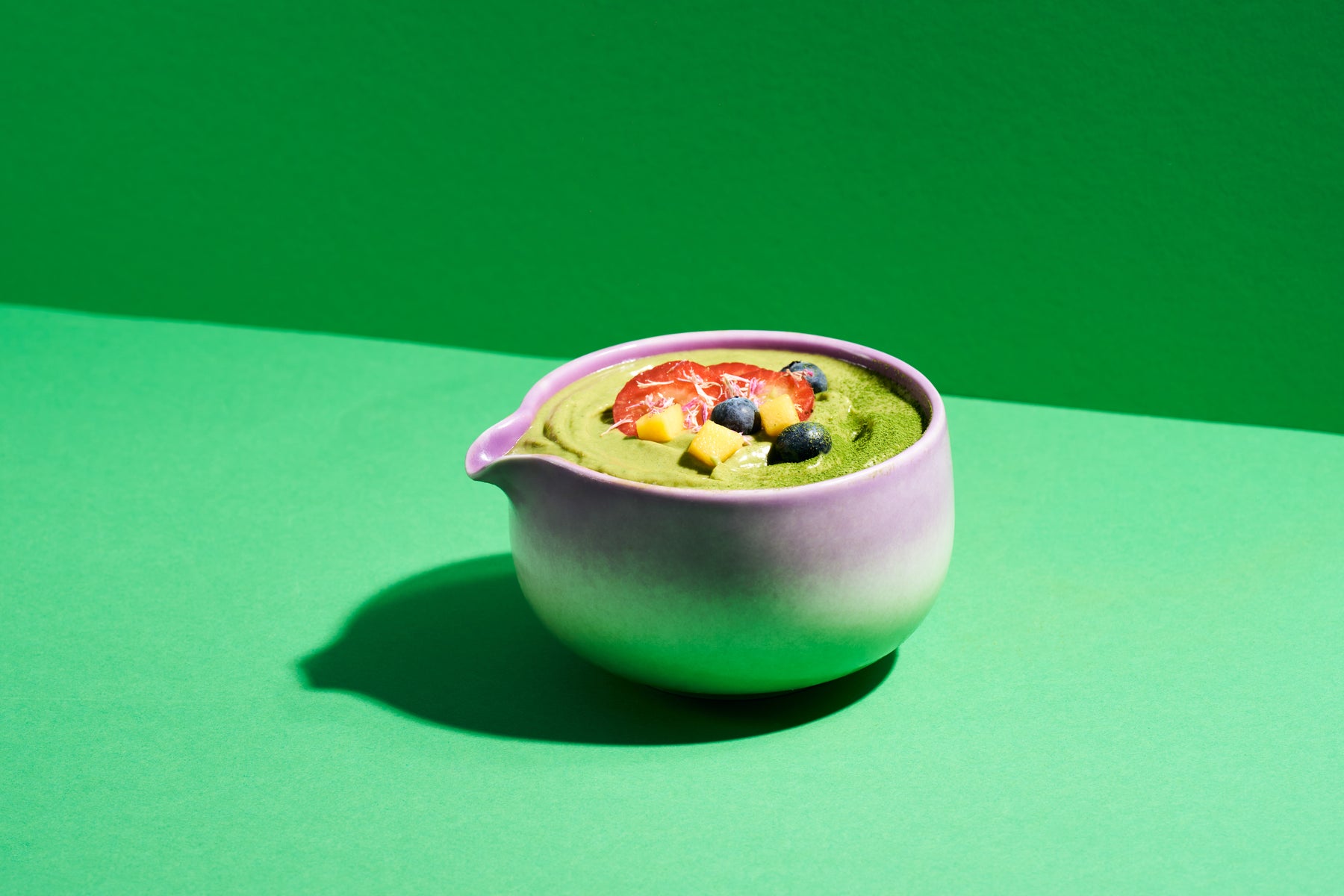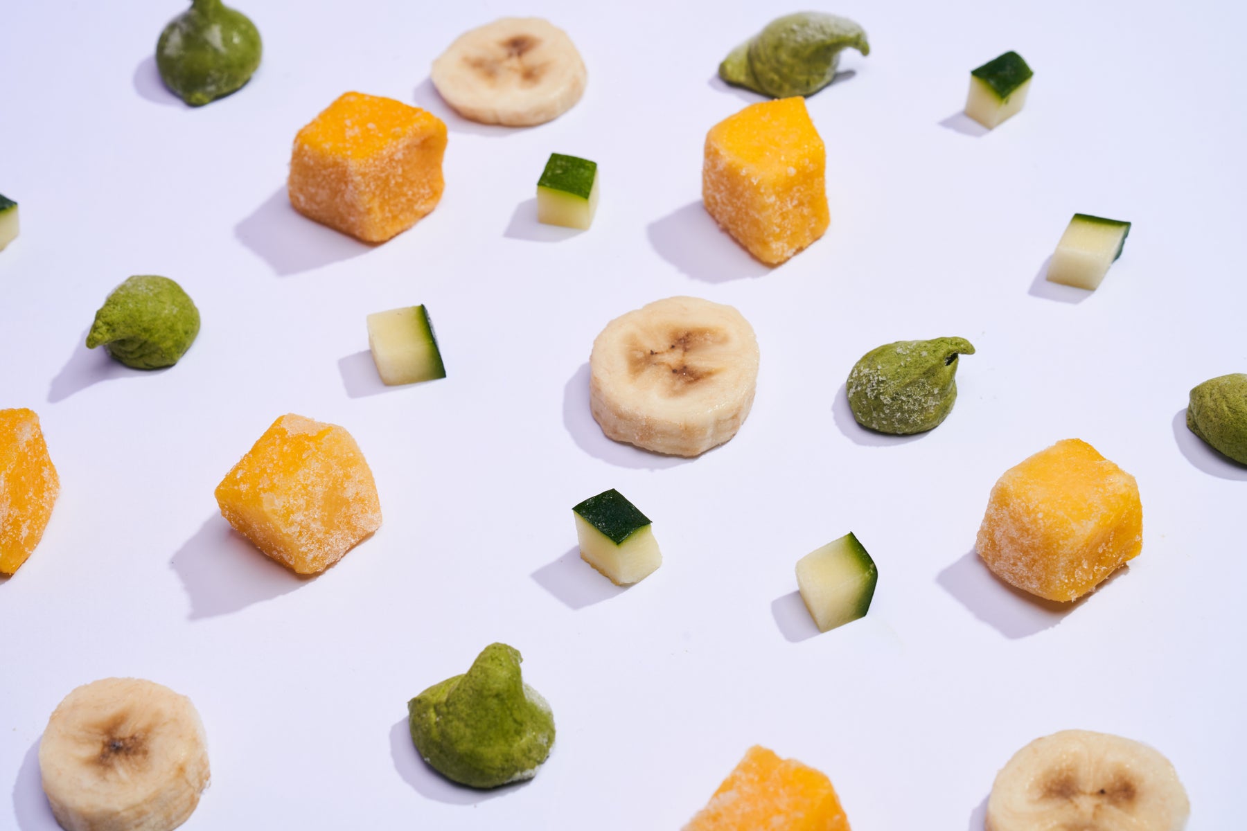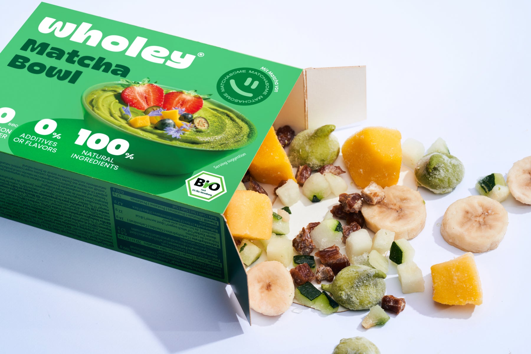 Tiefgefrorene Bio-Obst- und Gemüsemischung mit Matcha und Vanille zur Zubereitung einer Smoothie Bowl